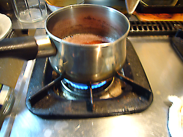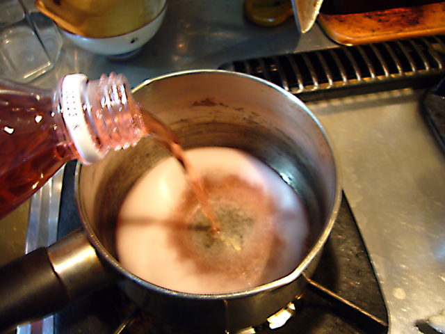 鍋にコップ一杯分の炭酸お汁粉を入れます。