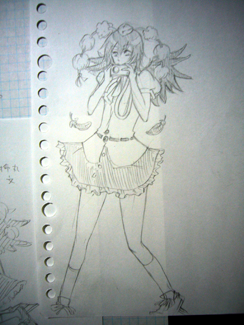 これじゃぁなんだしナァと思って、お二人が帰った後に射命丸描きました。